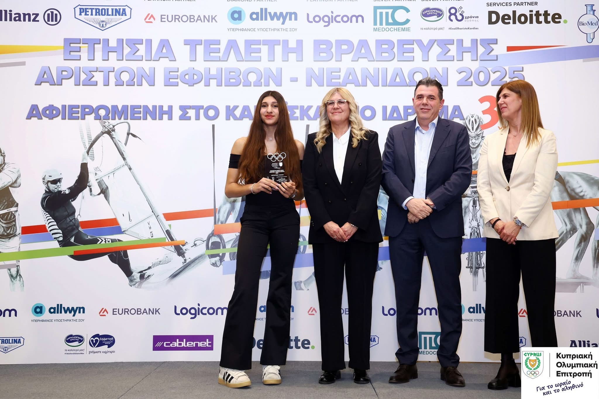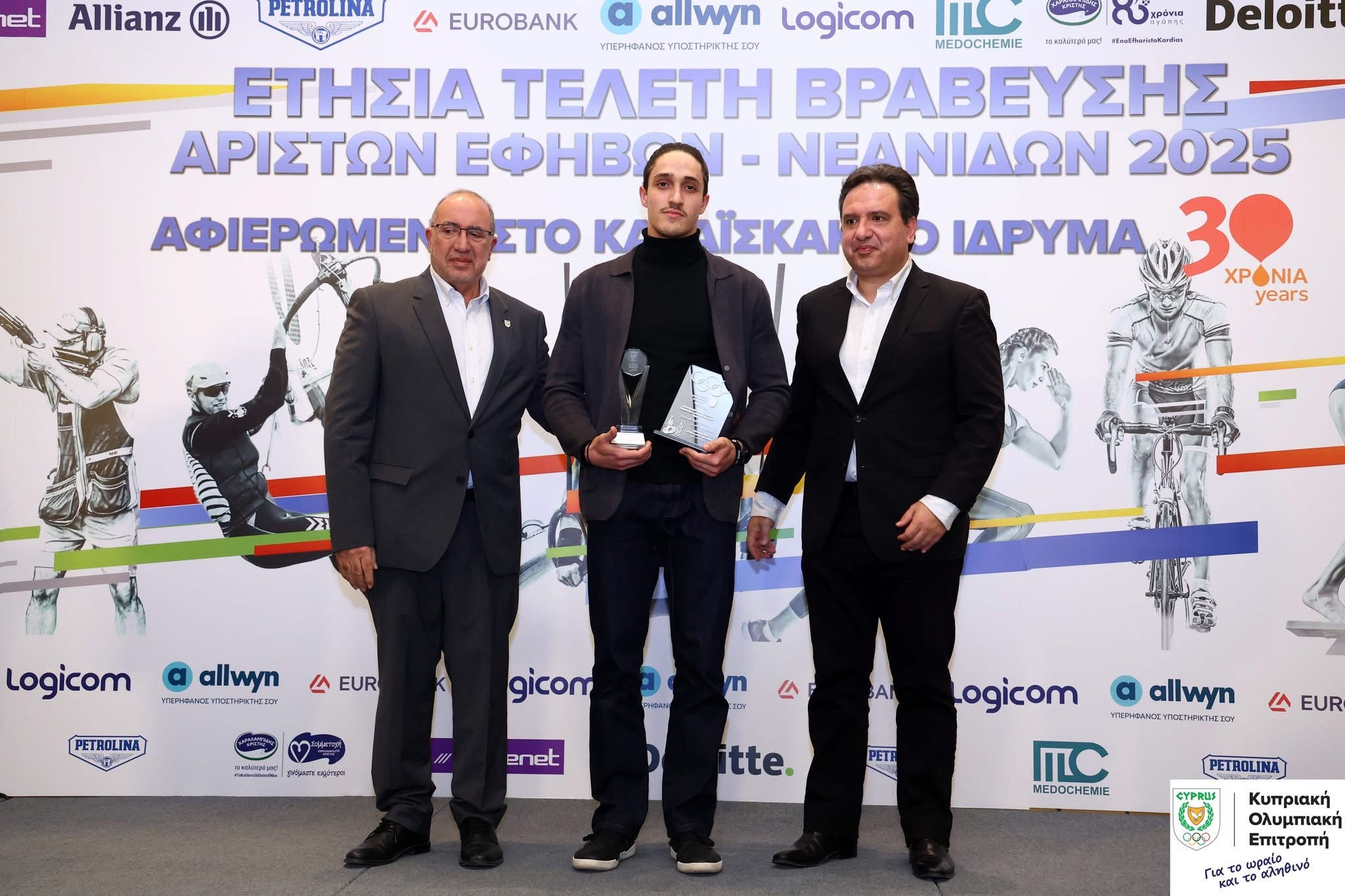 Στην ασφυκτικά γεμάτη αίθουσα Αllwyn «Ευ Αγωνίζεσθαι», και στην παρουσία Αξιωματούχων και Μελών του Εκτελεστικού Συμβουλίου της Κυπριακής Ολυμπιακής Επιτροπής, προέδρων και εκπροσώπων των Αθλητικών Ομοσπονδιών εκπροσώπων κοινοβουλευτικών κομμάτων, εκπροσώπων της Χορηγικής οικογένειας της Κυπριακής Ολυμπιακής Επιτροπής, εκπροσώπων των Υπουργείων Παιδείας Αθλητισμού και Νεολαίας και Υγείας, του ΓΕΕΦ, της Αστυνομίας Κύπρου, παλαίμαχων ποδοσφαιριστών και γονέων των αθλητών, τιμήθηκαν 72 νεαροί αθλητές από 36 αθλητικές ομοσπονδίες για τις επιδόσεις τους κατά το 2025, επιβεβαιώνοντας το εύρος και τη δυναμική του κυπριακού αθλητισμού σε αναπτυξιακό επίπεδο.