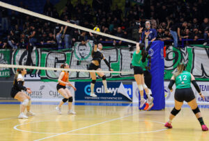 Οι ‘’πράσινες’’ προηγήθηκαν 14-07 στο πρώτο σετ. Σταδιακά, οι ‘’τριφυλλοφόρες’’ έχοντας τη θερμή συμπαράσταση του κόσμου τους αύξησαν σε 22-12 για να κερδίσουν 25-12 και να προηγηθούν 1-0 σε 25’