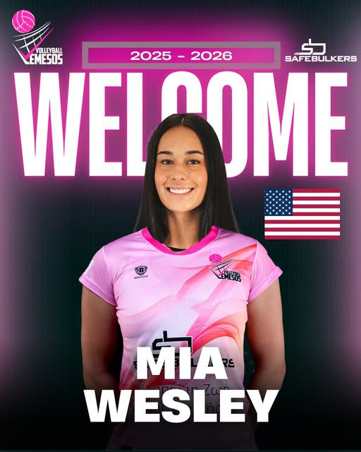 Η Αμερικανίδα ακραία Mia Wesley ενισχύει τη φετινή προσπάθεια της LEMESOS VOLLEYBALL. Η Wesley γεννήθηκε στις 30 Νοεμβρίου 2001 και έχει ύψος 1.83. Η πετοσφαιρίστρια της LEMESOS VOLLEYBALL εκτός από το Πανεπιστημιακό των ΗΠΑ αγωνίστηκε και στην Τσεχία.